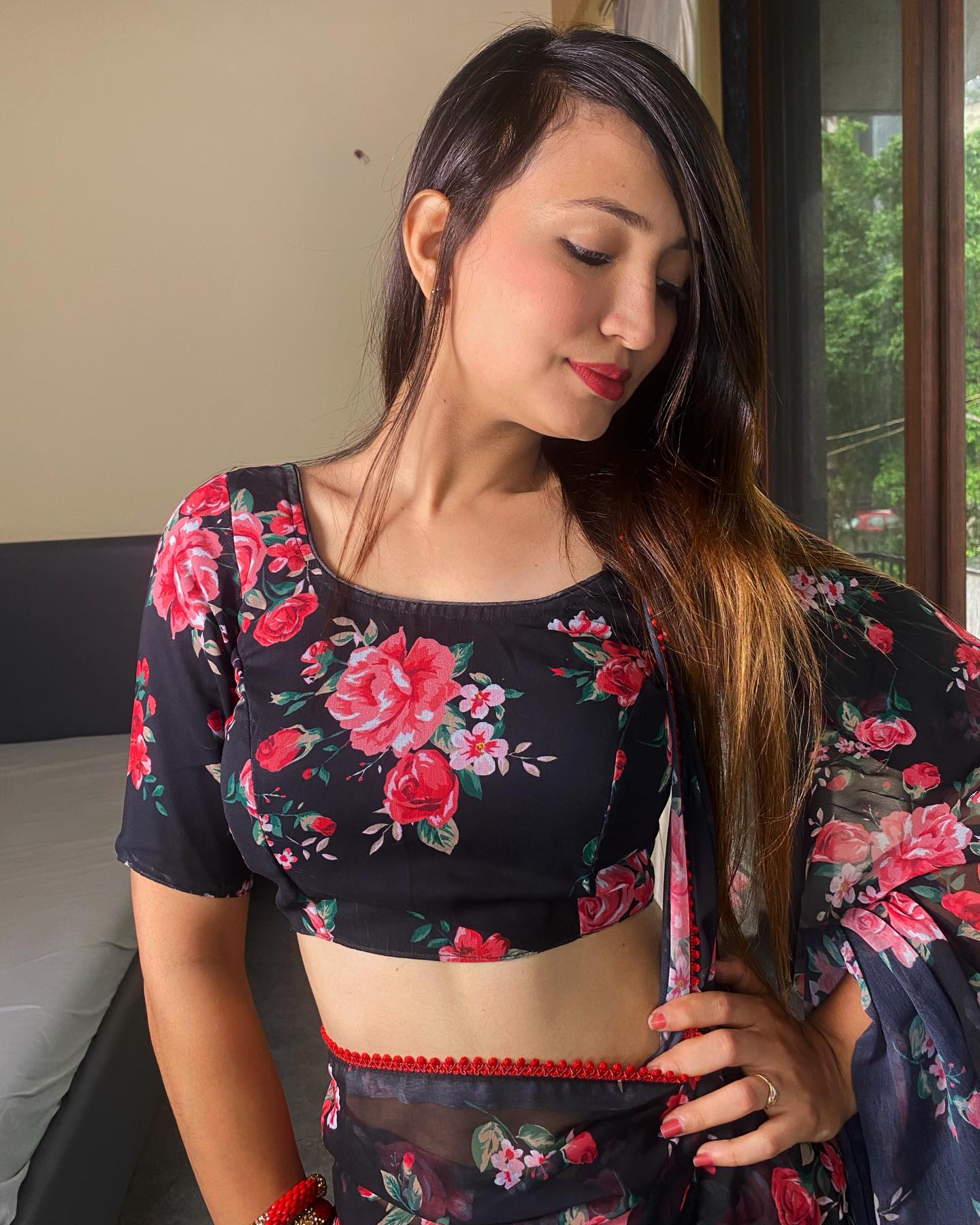 Crafted from premium quality georgette fabric, this saree features a stunning Black Floral print, blending tradition with a modern twist. The lightweight, breathable material ensures all-day comfort, while the unique design adds a trendy and stylish edge to your look.